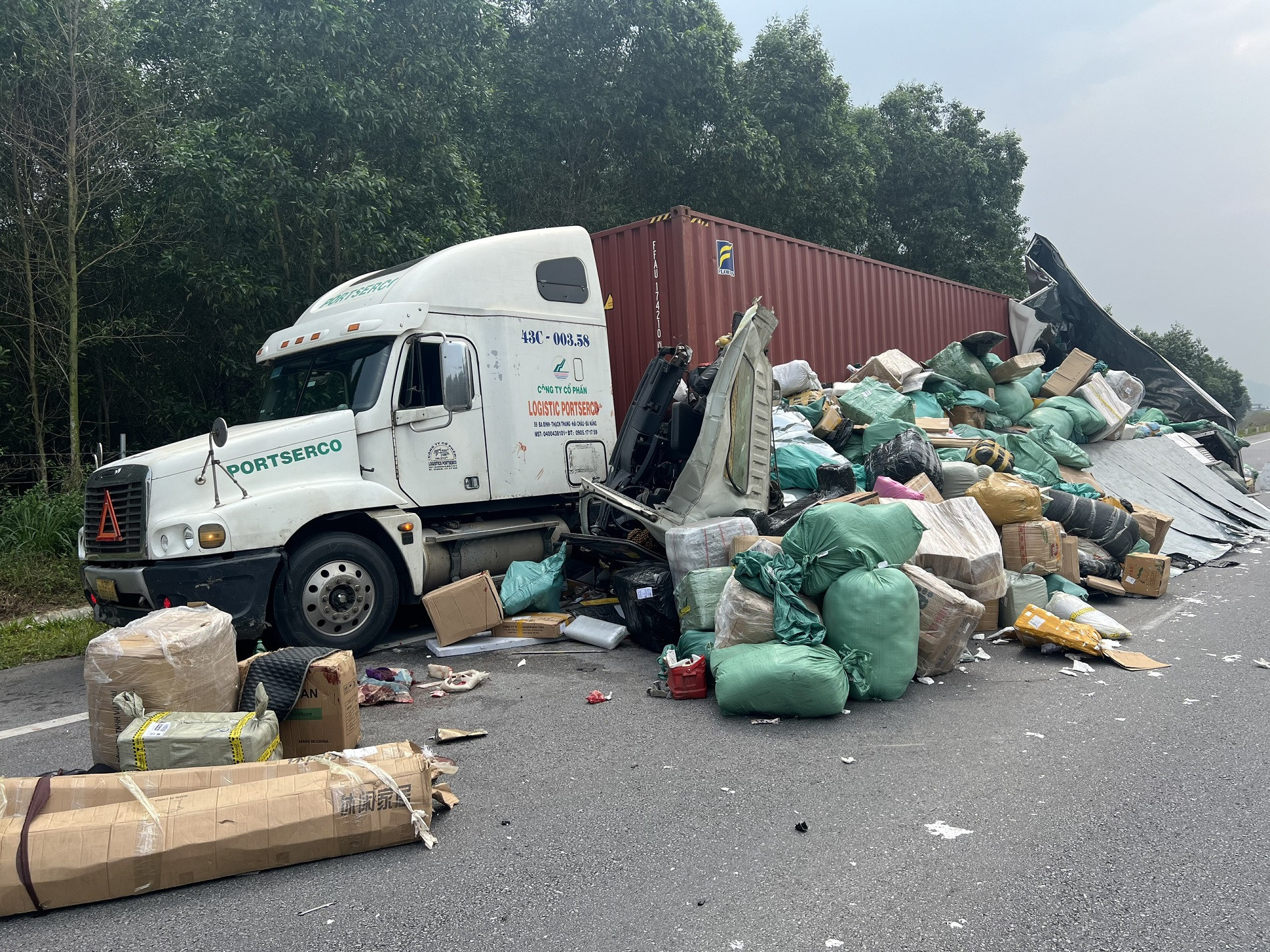 Đến địa điểm trên, ô tô tải bất ngờ đâm vào đuôi và một phần thùng xe đầu kéo BKS 43C - 003.58 kéo theo rơ - moóc 43R-001.79 do ông Trà Ngọc Huy (SN 1979; trú tại quận Liên Chiểu, TP Đà Nẵng) điều khiển, đang dừng ở làn đường cùng chiều.