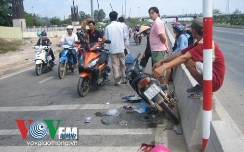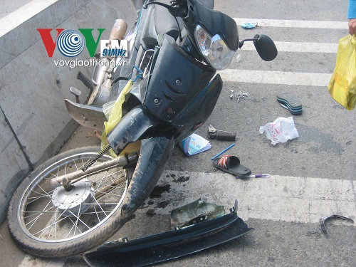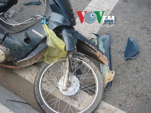 Tai nạn làm các nạn nhân ngã xuống đường, chị Chi nằm bất tỉnh trên vũng máu, còn 2 người con (1 trai, 1 gái) bị xây xát ở chân tay. Riêng chiếc xe máy bị gãy nát phần đầu, hư hỏng nặng.