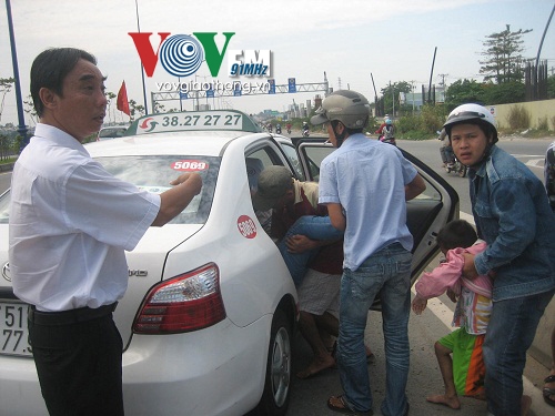 3 mẹ con được người dân gọi taxi để đưa đến Bệnh viện |