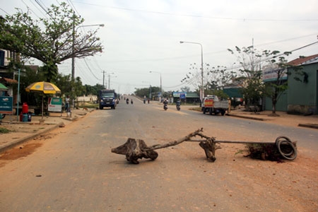 Cho rằng xe tải chở đất chạy quá nhanh, đất đá rơi vương vãi gây nguy hiểm, người dân ở TP Tam Kỳ (Quảng Nam) liên tục ra đường đặt chướng ngại vật chặn xe.