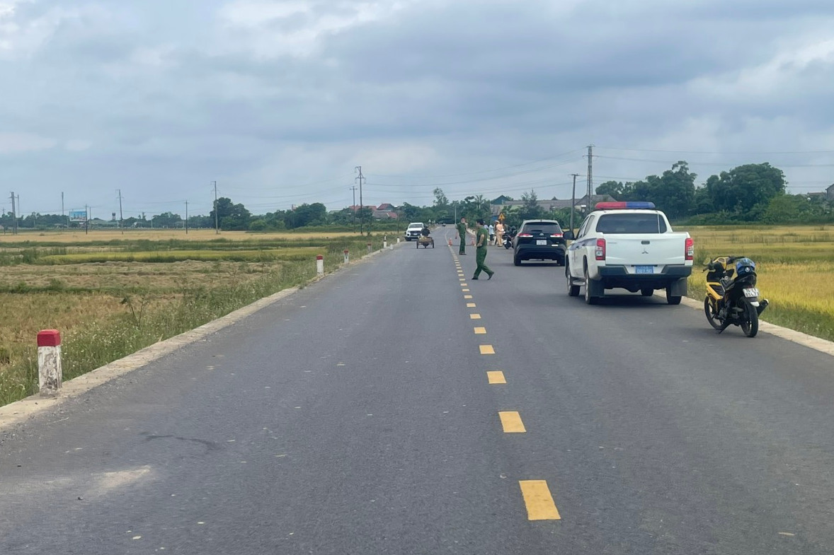 Đến khoảng 12h, anh H. mang quả đạn cối đập vào mặt đường nhựa (ở ngã ba đoạn cầu Hiền Lương về xã Hiền Thành).