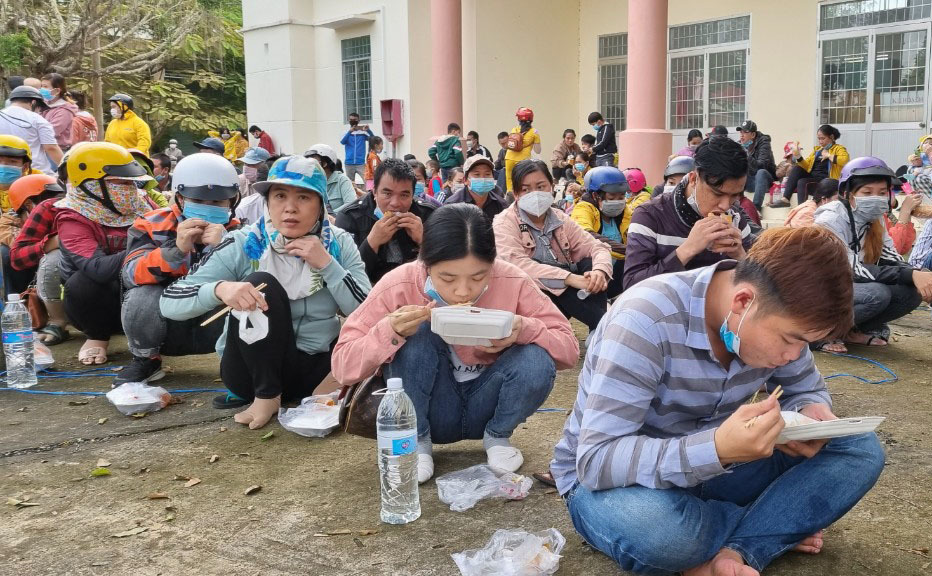 Tại đây, chúng tôi phát cơm nước, bánh mì cho họ ăn uống; sau đó sàng lọc đưa về từng huyện để cách ly”, ông Lâu nói.