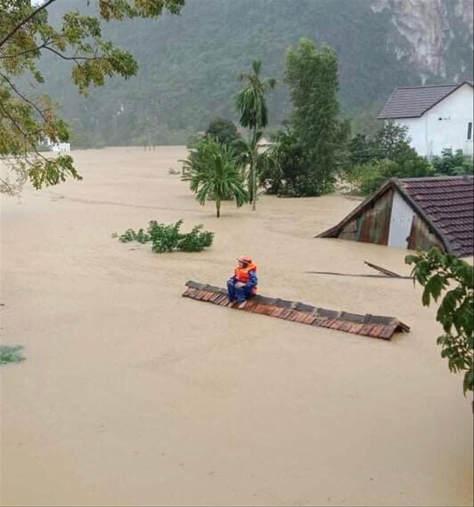 Lũ lớn nhấn chìm làng mạc, nhà cửa ở Quảng Bình, người dân đang trong tình trạng thiếu thức ăn và nước uống đang cần cứu trợ khẩn cấp. Nước lên quá nhanh, lại mất điện, nên dù dân có trữ được lương thực, thực phẩm thì cũng không có gì để đun nấu. Những người dân chạy lên khu vực tập trung tránh lũ, họ cũng không mang theo được gì.