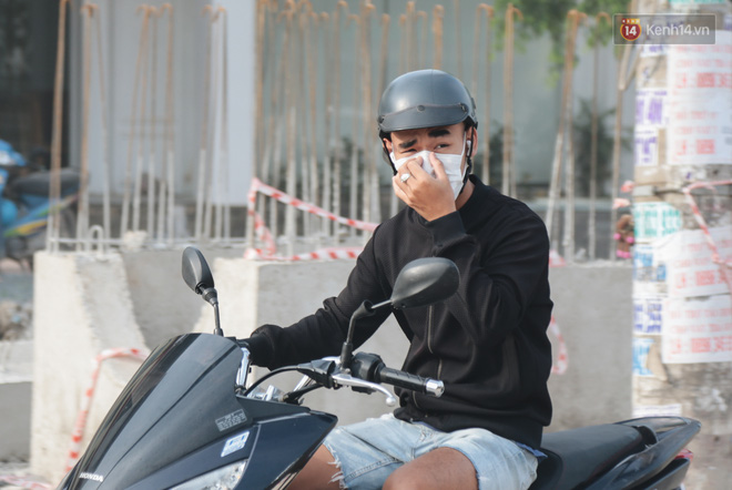 Toát mồ hôi sau khi vừa trải qua con đường đầy "bão" bụi, anh Trương Văn Học thở dài ngán ngẩm vì phải chịu cảnh này mỗi ngày.
