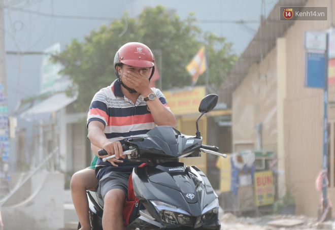Theo người dân, mỗi khi ô tô chạy qua thì con đường bụi bay mù trời, người đi xe máy phía sau bị hạn chế tầm nhìn và phải dùng tay che mặt dù có đeo khẩu trang.