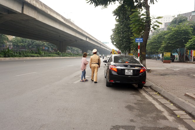 Ngày 11/12, ghi nhận của phóng viên trên tuyến đường Phạm Hùng - Khuất Duy Tiến, Tổ công tác Đội CSGT đường sắt tiến hành nhắc nhở, lập biên bản nhiều trường hợp phương tiện ô tô dừng đỗ tại nơi có biển cấm.