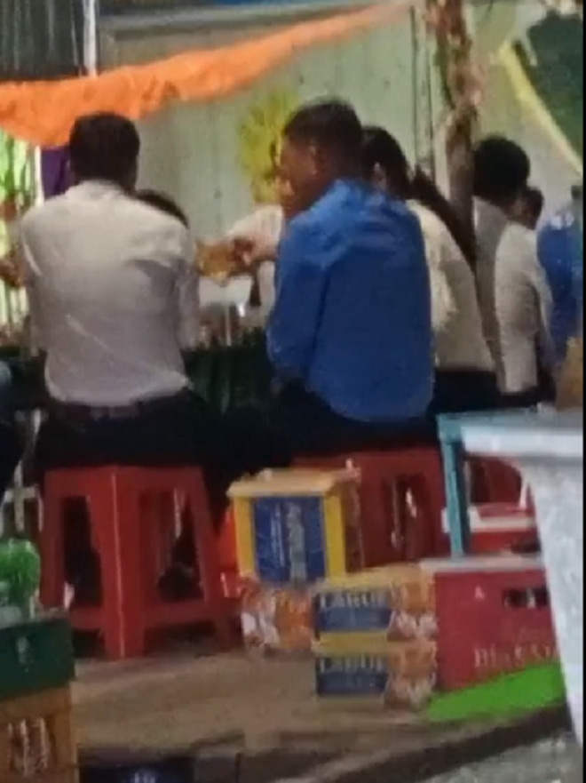 Theo đó, nguồn tin này cũng cung cấp hình ảnh và clip của buổi tiệc. Theo hình ảnh clip, tham gia buổi tiệc có cả nam và nữ, xung quanh bàn có để nhiều thùng bia và có thùng bia được mở. Tại buổi ăn cơm, những người tham gia có cụng ly với nhau.