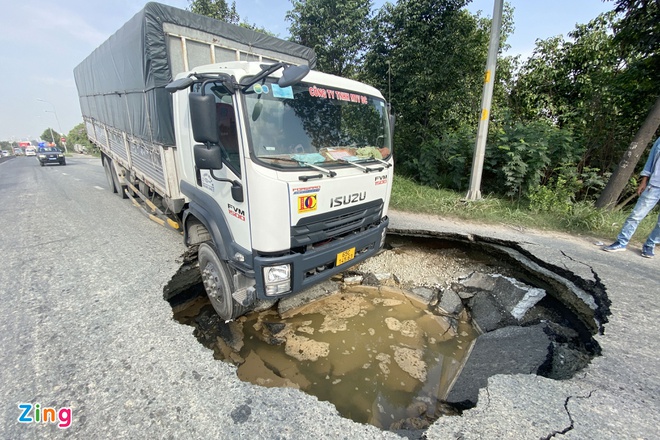Theo quan sát, hố "tử thần' có đường kính hơn 3m, sâu hơn 2m. Xung quanh hố khoét hàm ếch rộng, có thể nuốt chửng đầu xe tải và ô tô con.