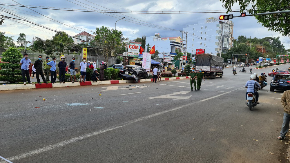 Khi chạy qua đoạn ngã 4 hồ Thiên Nga, xe tải xuống dốc không làm chủ được tốc độ đã tông vào xe ô tô BKS: 48A-068.49 do chị L.T.V. (40 tuổi, ngụ TP Gia Nghĩa) điều khiển và xe BKS: 49A-085.18 do anh Khoa điều khiển đang dừng đèn đỏ phía trước.