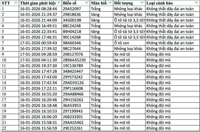 Theo thông tin từ trung tâm điều hành giao thông, trong khoảng thời gian từ 12h ngày 16/1 đến 12h ngày 17/1/2026, tình hình trật tự an toàn giao thông tại Hà Nội ghi nhận nhiều diễn biến phức tạp, đặc biệt vào thời điểm cuối tuần khi mật độ phương tiện gia tăng. Dữ liệu được tổng hợp từ hệ thống camera giao thông AI cho thấy số lượng vi phạm bị xử lý phạt nguội tăng rõ rệt, buộc cơ quan chức năng phải nhanh chóng lập danh sách phạt nguội để chuyển sang các đơn vị liên quan xử lý theo quy định.