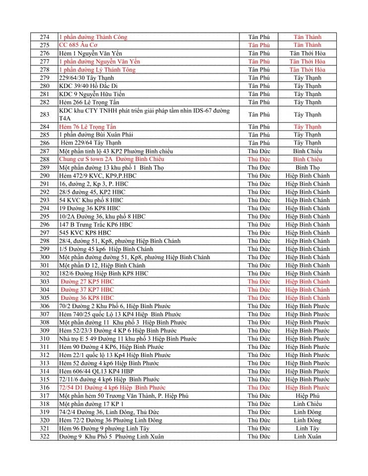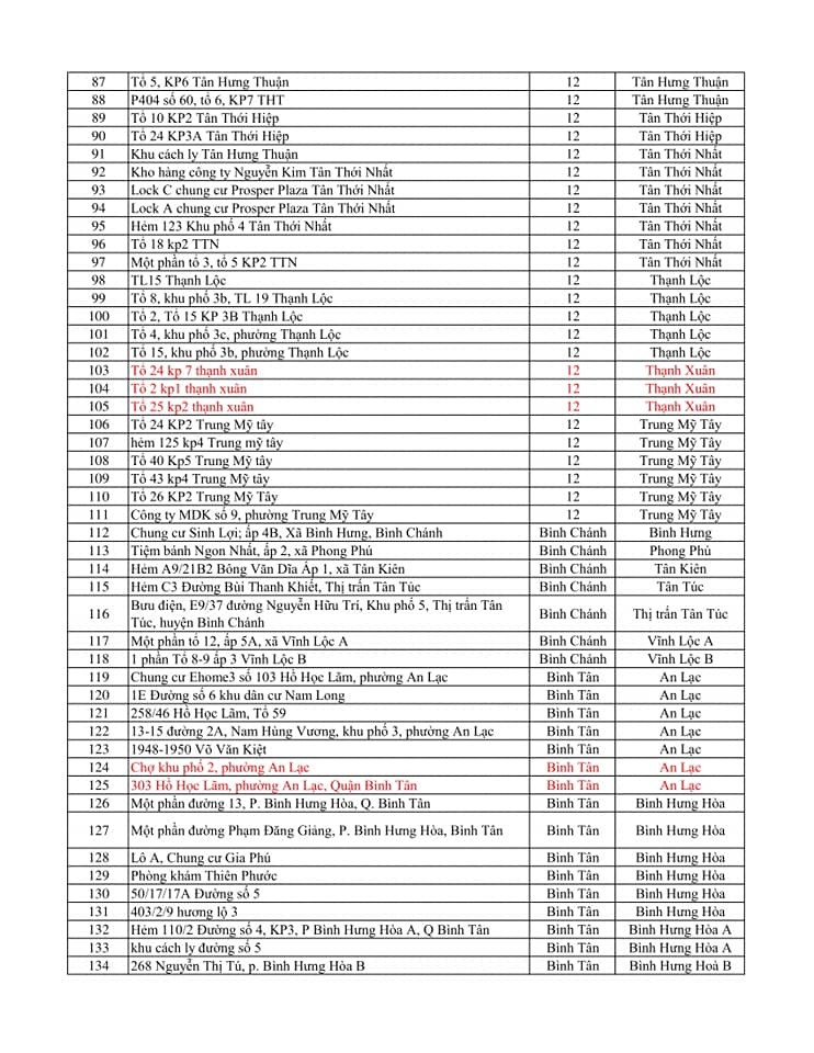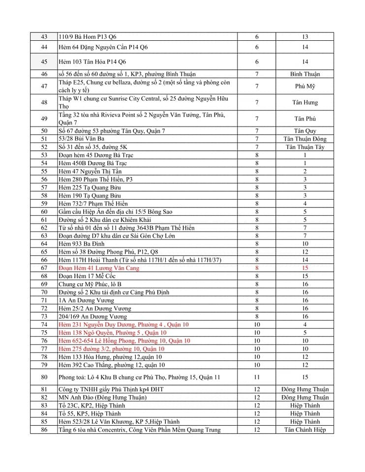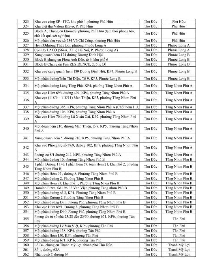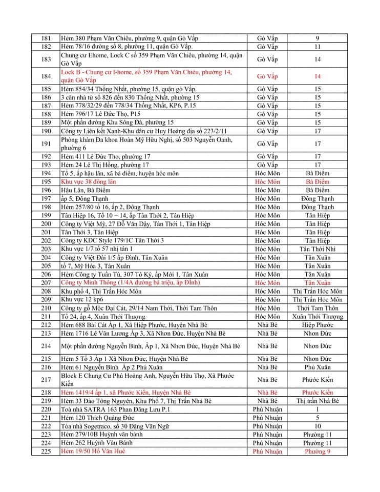 Danh sách 371 điểm phong tỏa liên quan đến các ca bệnh Covid-19 theo cập nhật của Trung tâm kiểm soát bệnh tật TP (HCDC):