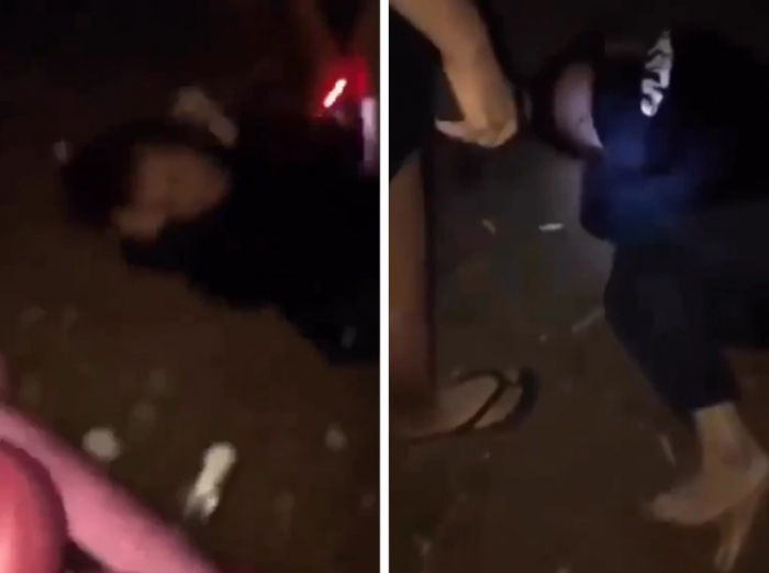 Một lúc sau nạn nhân nằm co quắp lại, lấy tay ôm đầu, che mặt nhưng người kia vẫn không tha, liên tiếp dí roi điện vào người của nạn nhân. Những người còn lại vừa cười vừa chửi tục, trong đó có một người dùng điện thoại quay clip.