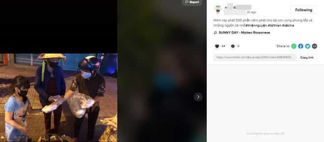 Có lẽ, trước sức ép của dân mạng, clip quát mắng hai mẹ con và một loạt các clip quay cảnh phát quà hôm đó (cụ thể là bánh và vài chiếc khẩu trang) đã "bốc hơi" trên trang TikTok của X.Đ. Hình ảnh mới nhất được chia sẻ là vài giờ trước, nhưng không có âm thanh thực.