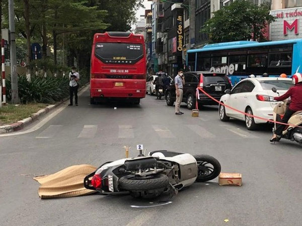 Trước đó, vào khoảng 8h sáng ngày 27/4, tại ngã tư Kim Mã - Núi Trúc, chị Nh. điều khiển xe máy SH biển số 29S1-835.xx đi trên đường Kim Mã (hướng Kim Mã đi Nguyễn Thái Học) đã va chạm với ô tô khách 45 chỗ mang BKS 29B- 412.xx do lái xe Hoàng Văn Th. (SN 1985 ở huyện Tam Dương, tỉnh Vĩnh Phúc) điều khiển.