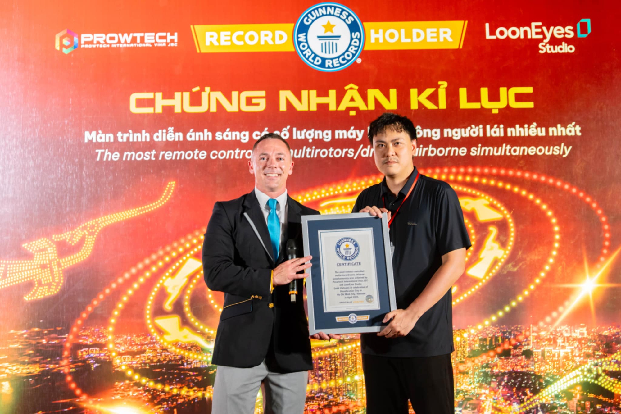 Tối 28/4, hơn 10.500 drone đồng loạt cất cánh trên bầu trời TP.HCM. Sự kiện này không chỉ tạo nên một màn trình diễn ánh sáng chưa từng có trong lịch sử Việt Nam mà còn xác lập kỷ lục Guinness thế giới cho số lượng drone bay đồng thời nhiều nhất. Tuy không thể trình diễn được trong tối 30/4 vì vấn đề nhiễu sóng diện rộng, buộc ban tổ chức phải tạm dừng chương trình vì lý do an toàn nhưng người đứng sau - đạo diễn Đặng Lê Minh Trí cho biết bản thân cùng ekip đã có những đêm không ngủ.