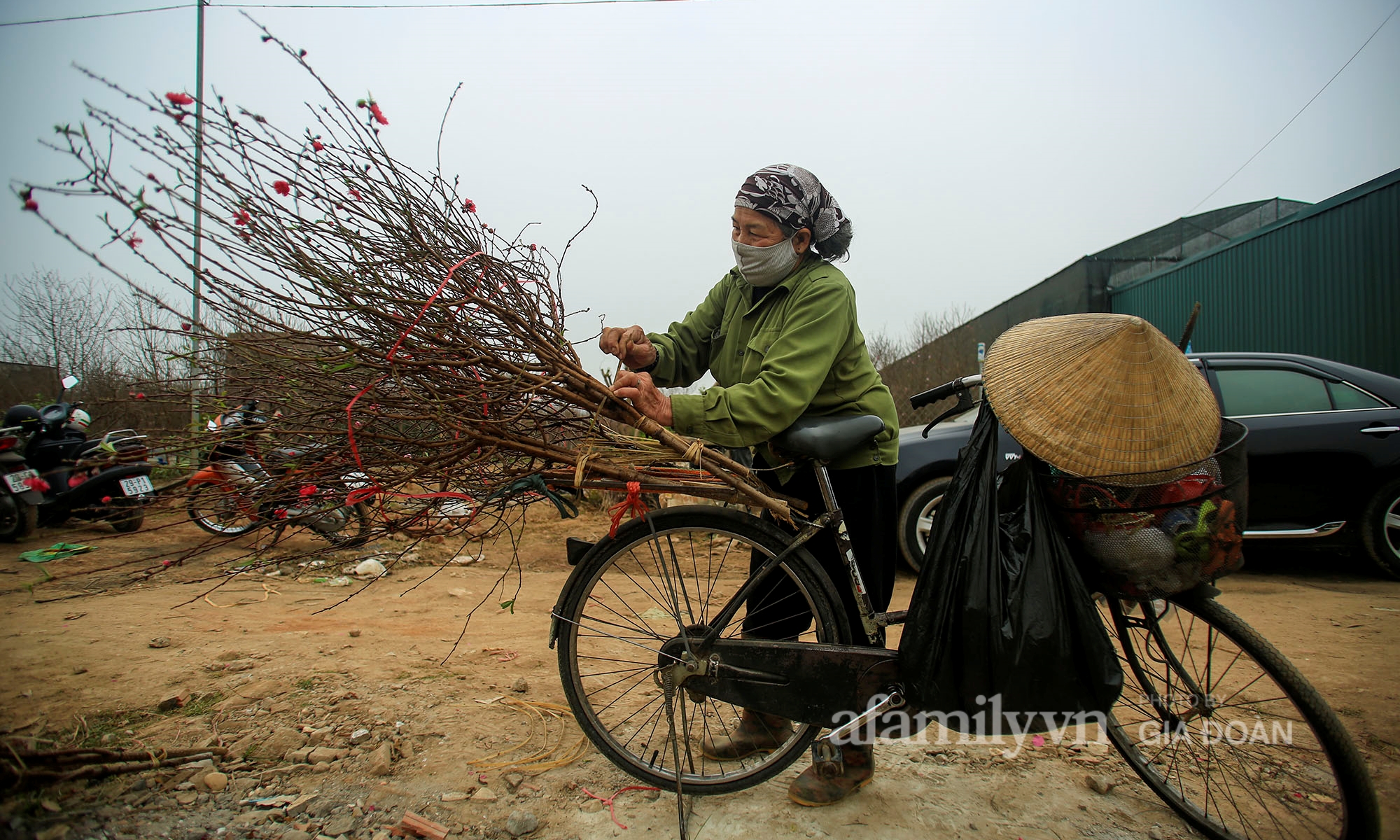 Vừa mang hai cành đào từ dưới vườn lên, bà Nguyễn Thị Vũ (60 tuổi) vui vẻ cho biết, những cành đào sớm chưa kịp bung nở nhiều hoa và lác đác nụ nhưng đã có nhiều người tới hỏi. Tuỳ từng kích cỡ đào bà bán với giá 400-800 nghìn đồng.