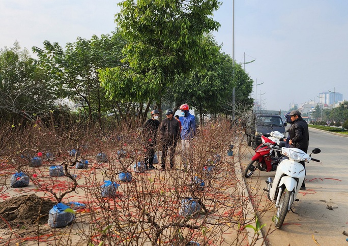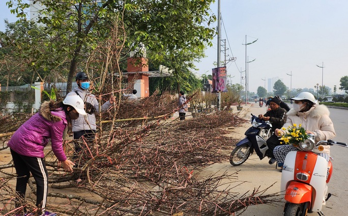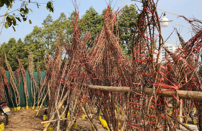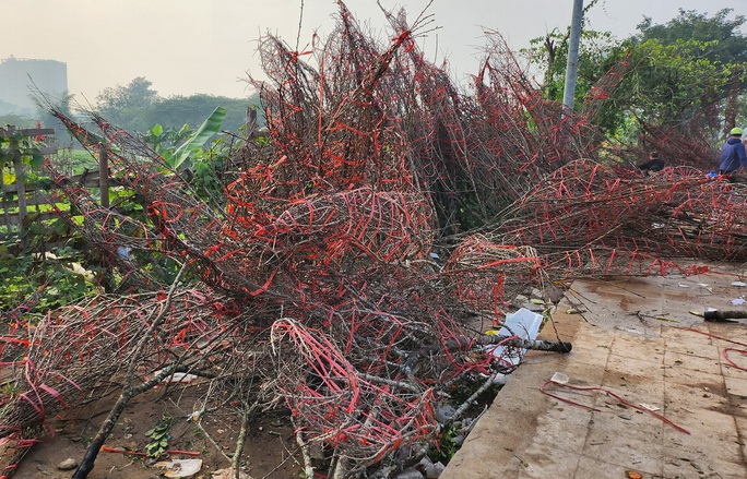 Riêng có đào rừng vẫn còn rất nhiều chất từng đống trên vỉa hè. Mặc dù tiểu thương đã giảm giá "sốc" để gỡ gạch chút vốn liếng bỏ ra, thế nhưng người dân vẫn không mặn mà. Nhiều nhà vườn đành phải chặt bỏ, vứt đào thành từng đống trên vỉa hè.