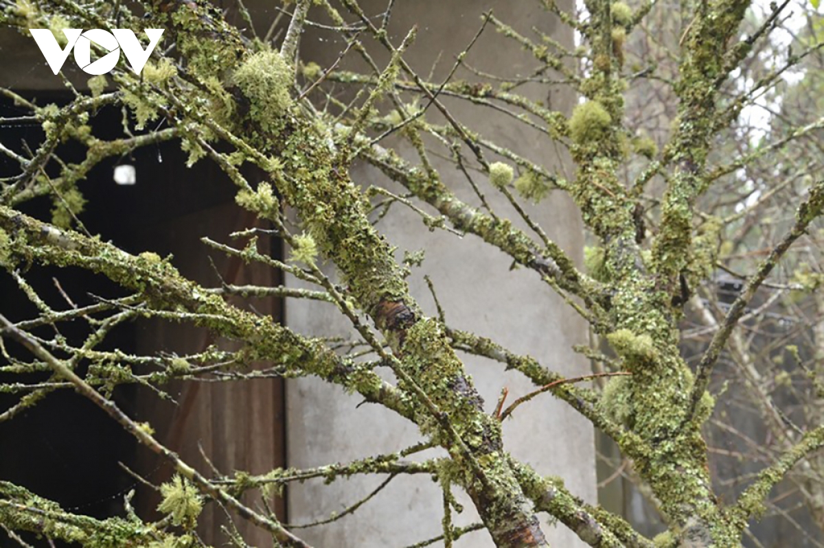 Ông Tiến cho biết, đào vùng cao bề ngoài rêu mốc, cổ kính thực ra là lớp địa y bám trên vỏ cây; cộng với đặc thù không khí lạnh, độ ẩm cao nên loài sinh vật này phát triển rất mạnh, theo thời gian địa y bám càng dày.