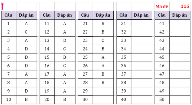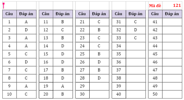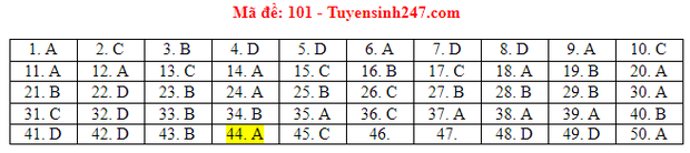 Các mã đề đang giải: 101, 102, 103, 105, 106, 108, 109, 110, 111, 112 115, 118, 119, 121