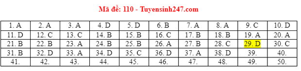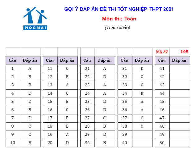 Đáp án đề thi môn Toán tốt nghiệp THPT 2021 vừa được sĩ tử hoàn thành vào chiều ngày 7/7 như sau.