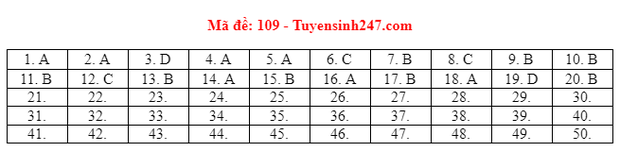 Chiều ngày 7/7, hơn 1 triệu thí sinh đã bước vào môn thi thứ 2 trong kì thi tuyển sinh đại học. Dưới đây là đáp án đề thi môn Toán tốt nghiệp THPT 2021.