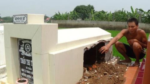 Gia đình ông Khỏe nói, đây không phải lần đầu tiên người đàn ông này có ý định đập mộ vợ. Những lần trước may mắn mọi người kịp can ngăn.