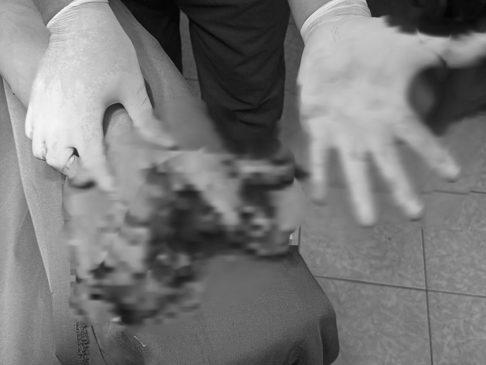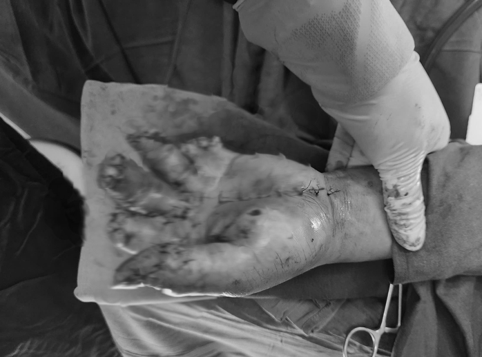Bác sĩ Nguyễn Đức Thế, Phó Trưởng Khoa Chấn thương chỉnh hình - bỏng, cho biết bàn tay trái của bệnh nhân bị dập nát nghiêm trọng, chẻ đôi giữa đốt ngón 2 và 3. Kíp trực đã cắt lọc phần mô hoại tử, cố định khớp cổ tay, kết hợp xương và tạo hình mỏm cụt các ngón để bảo tồn tối đa chức năng bàn tay. Hiện bệnh nhân tỉnh táo, đang được theo dõi hậu phẫu.