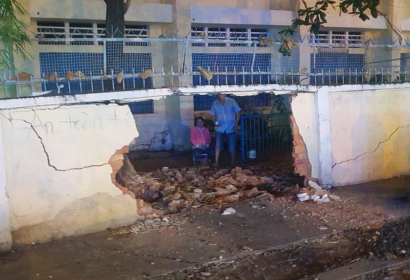 Bảo vệ trường tiểu học Thanh Đa cho hay, bên cạnh vùng bị sập cho va chạm, nhiều điểm xung quanh của hàng rào cũng bị ảnh hưởng dẫn đến rạn nứt.