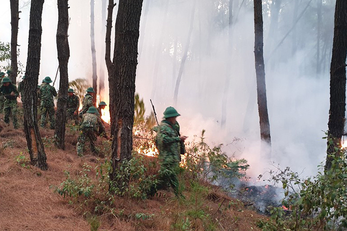 "Gần 2 km đường băng cản lửa, rộng 15 m được lập. 500 người bố trí gác ở nhiều điểm để không cho lửa lan qua đường băng. Tình hình dần kiểm soát được, không có nhà dân phải di tản", lãnh đạo huyện Diễn Châu chỉ đạo tại hiện trường thông báo.