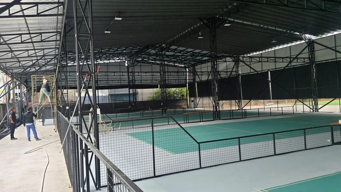 Bên ngoài khu đất treo biển bãi giữ xe kèm bảng giá, song bên trong lại hầu như không có phương tiện gửi. Thay vào đó là các hạng mục xây dựng quy mô lớn với 4 sân bóng đá mini, 6 sân pickleball cùng khu vực kinh doanh giải khát đang gấp rút hoàn thiện.