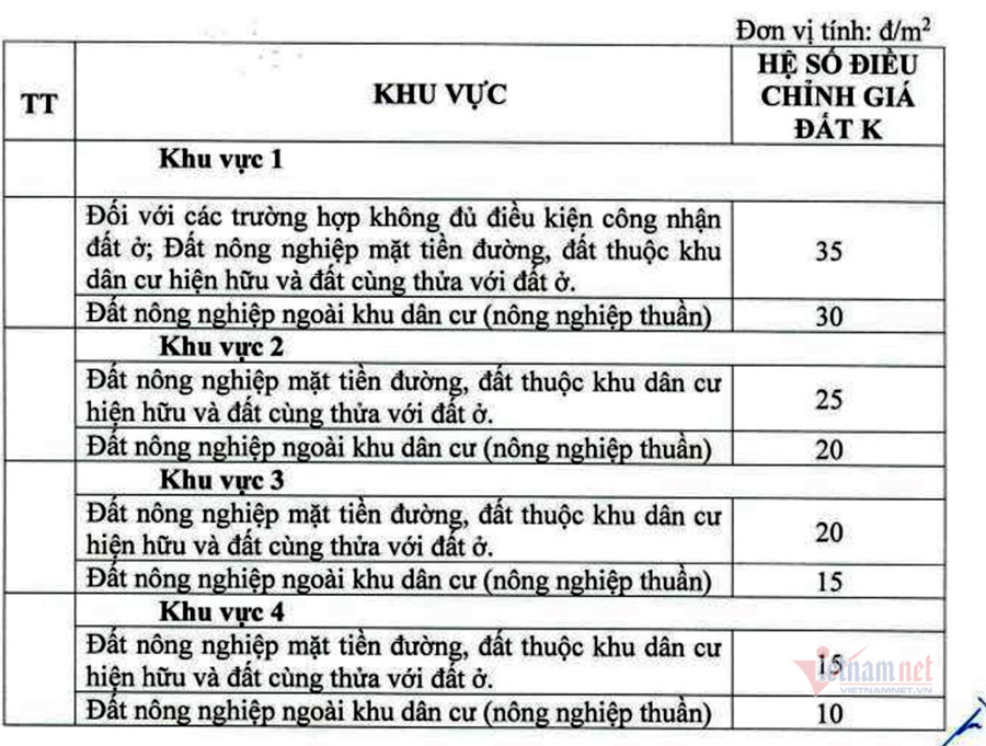 Đất phi nông nghiệp được chia làm 4 vị trí. Vị trí 1 gồm những thửa đất, khu đất ở có ít nhất một mặt giáp với đường được quy định trong bảng giá đất. Cụ thể: