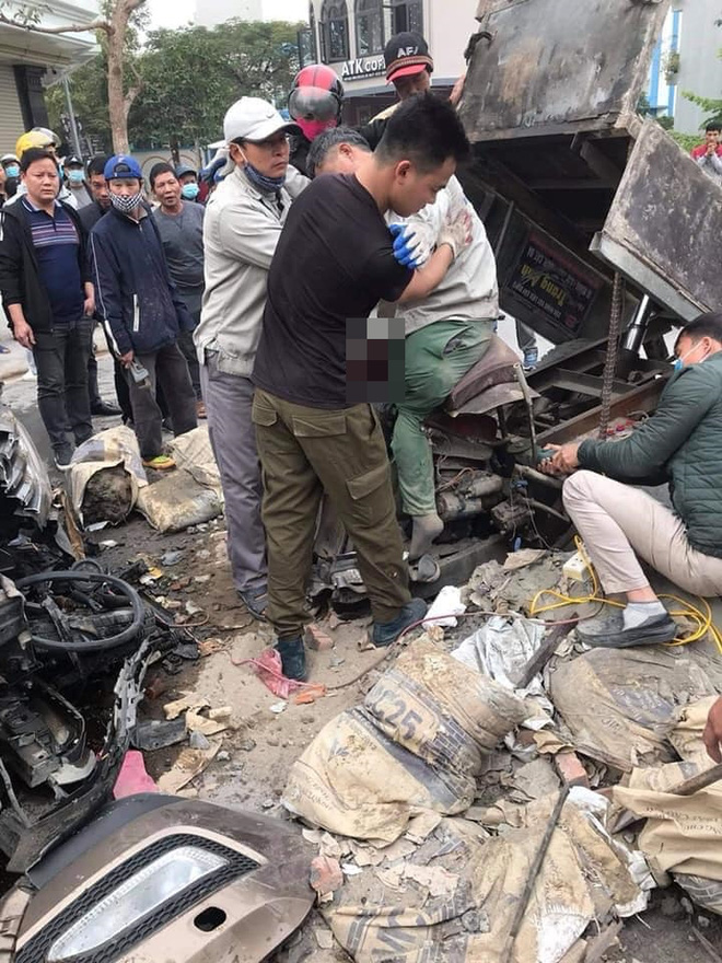 Tài xế xe ba gác bị đâm nát 2 chân khi vẫn còn ngồi trên ghế lái. Nạn nhân được người dân xung quanh đỡ ra ngoài. Cảnh tượng gây ám ảnh cho nhiều người chứng kiến.