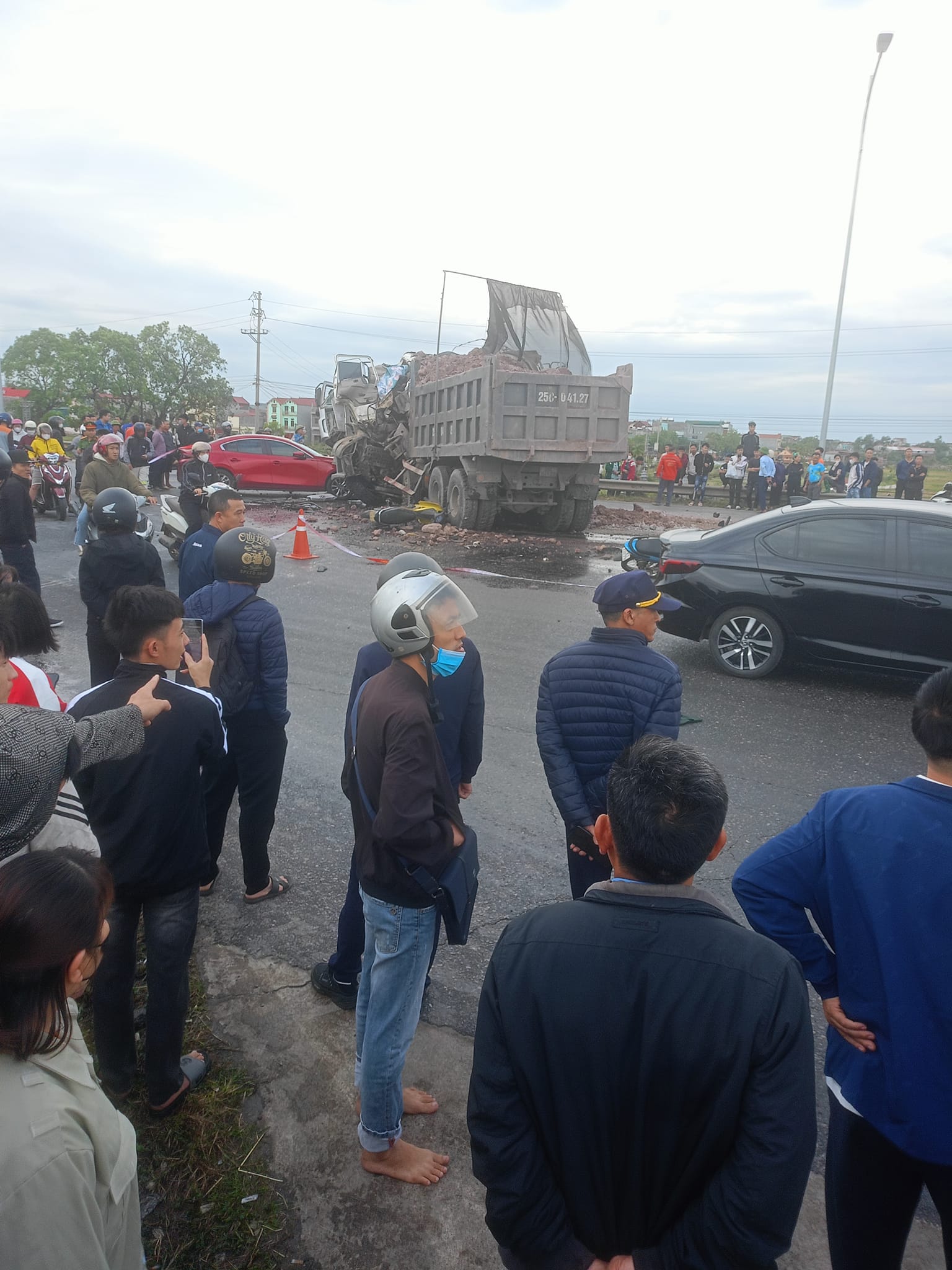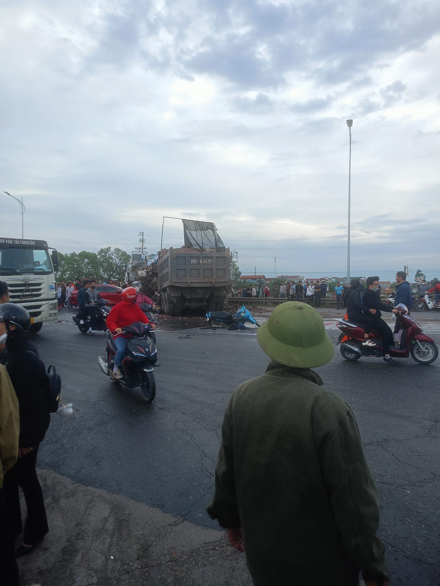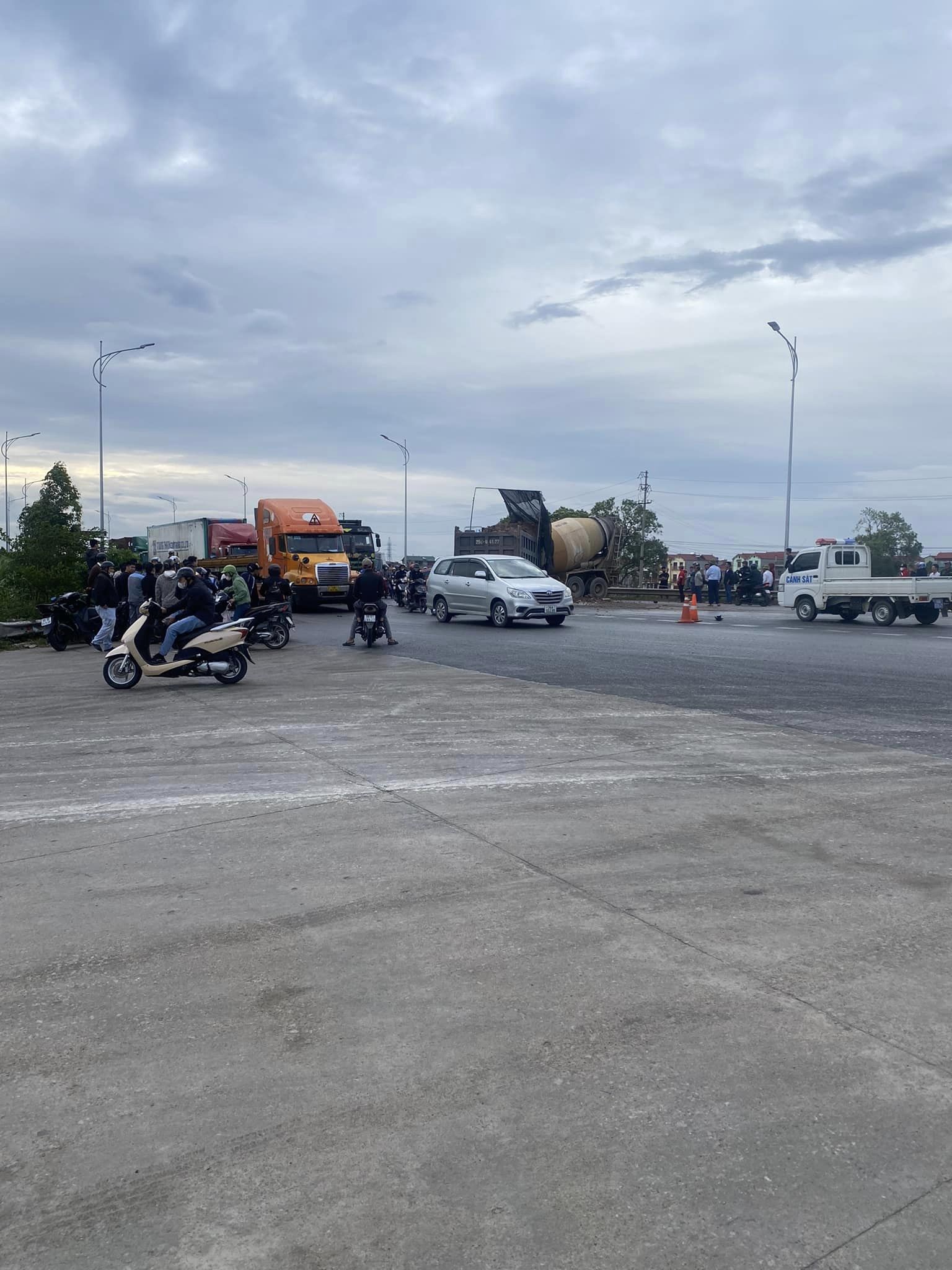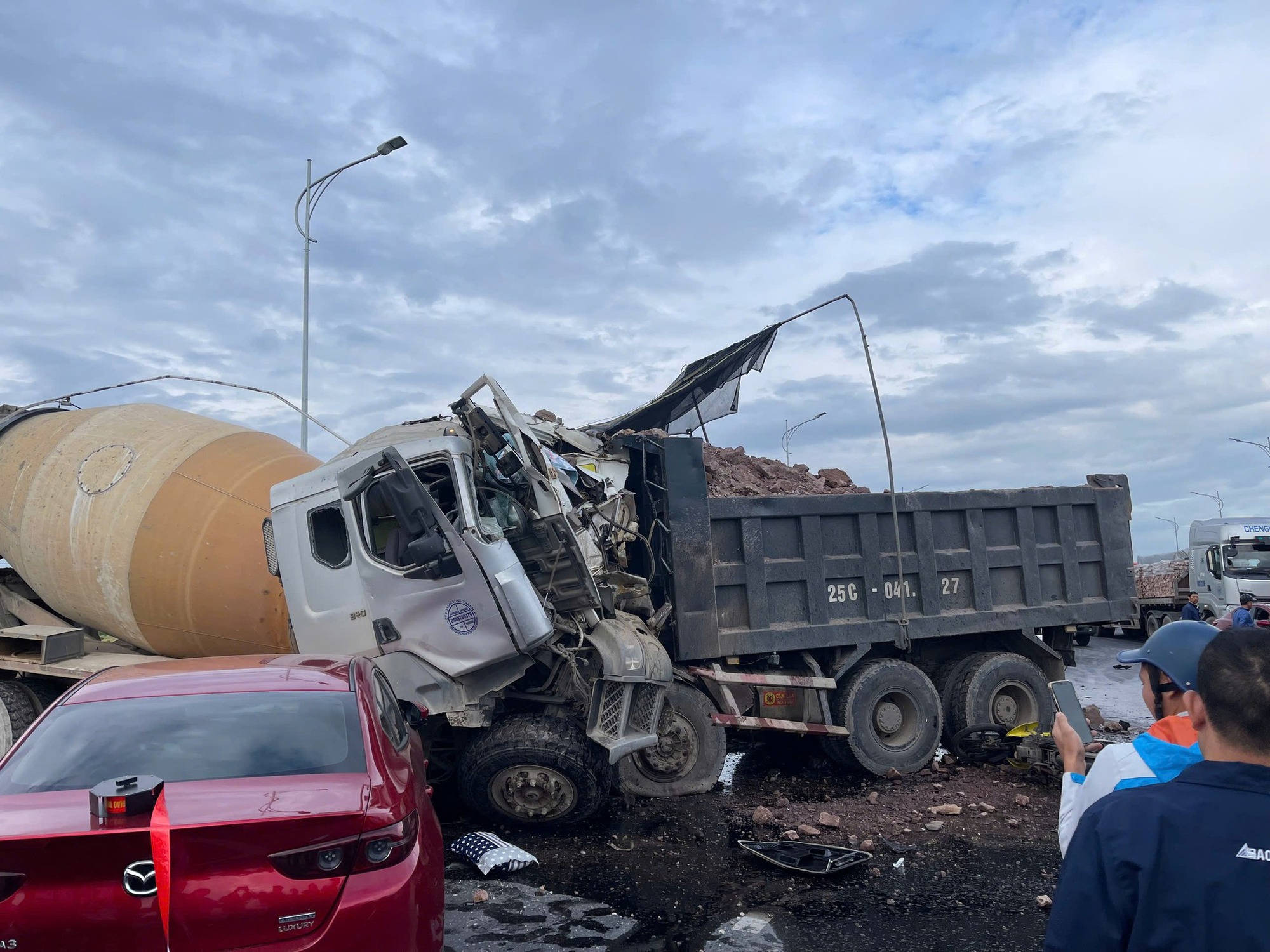 Vào thời điểm trên, xe ô tô tải BKS: 25C-041xx (ban đầu xác định là do anh Trần Văn Q., 23 tuổi, ở Lào Cai điều khiển) va chạm với xe ô tô bồn chở bê tông (do anh Nguyễn Văn Th., 60 tuổi, trú tại Quế Võ, Bắc Ninh điều khiển) và xe ô tô Mazda 3 BKS: 99A-557xx (do anh Nguyễn Văn T., 30 tuổi, trú tại Lương Tài điều khiển).