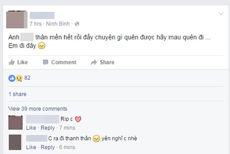 Theo nhiều người suy đoán lý do khiến người này tự tử là vì tình vì trước đó cô gái này đã đăng status đầy hàm ý nhắn gửi đến một người tên T.: "Anh T. thân mến, hết rồi đấy chuyện gì quên được hãy mau quên đi... Em đi đây".
