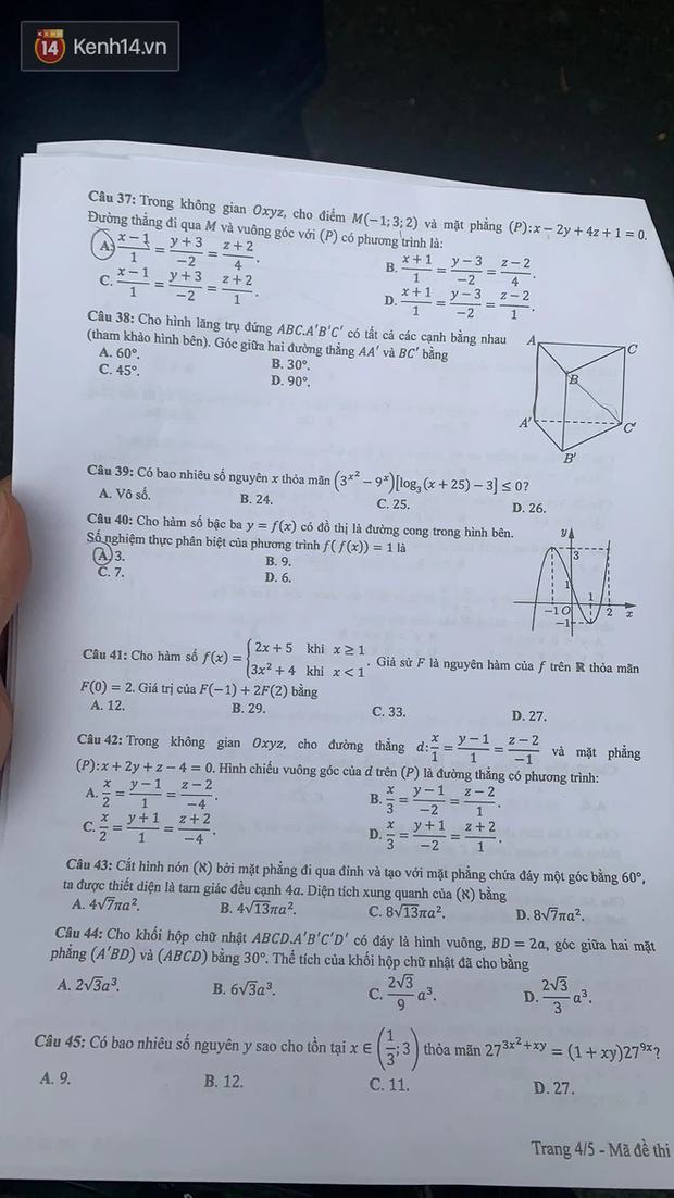 07/07/2021 23:29Đề thi môn Toán tốt nghiệp THPT 2021 chính thức: Thí sinh kêu dễ, toàn 8 - 9 - 10