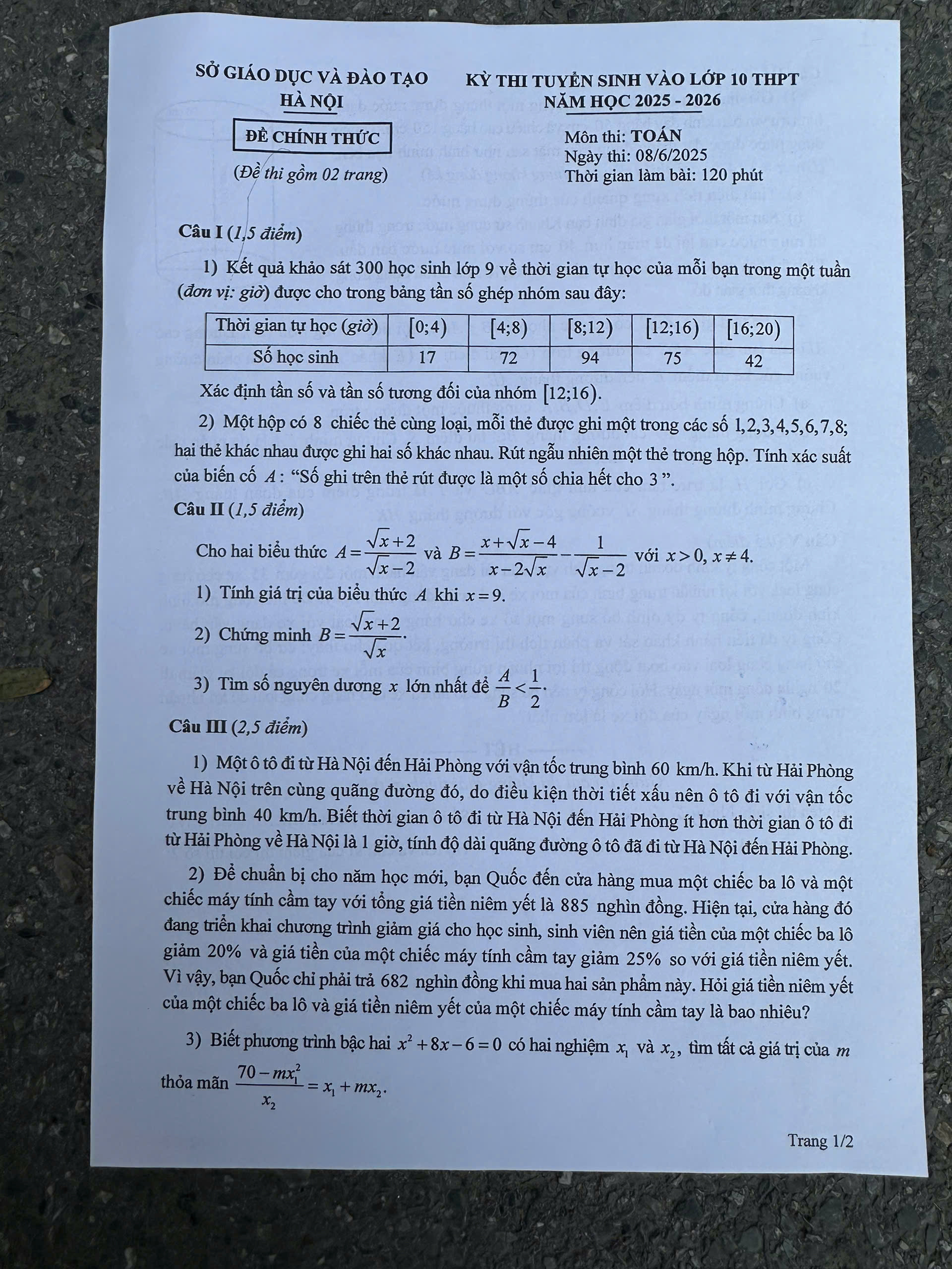 Dưới đây là đề thi lớp 10 môn Toán tại Hà Nội năm 2025 (Đang cập nhật):