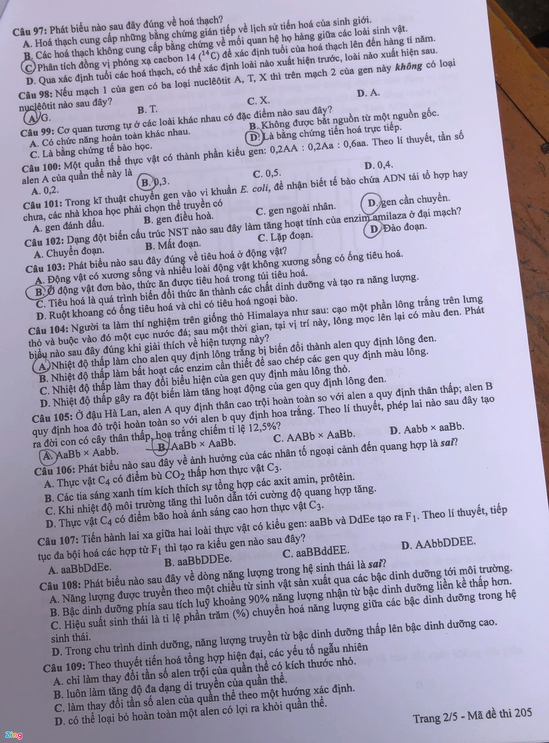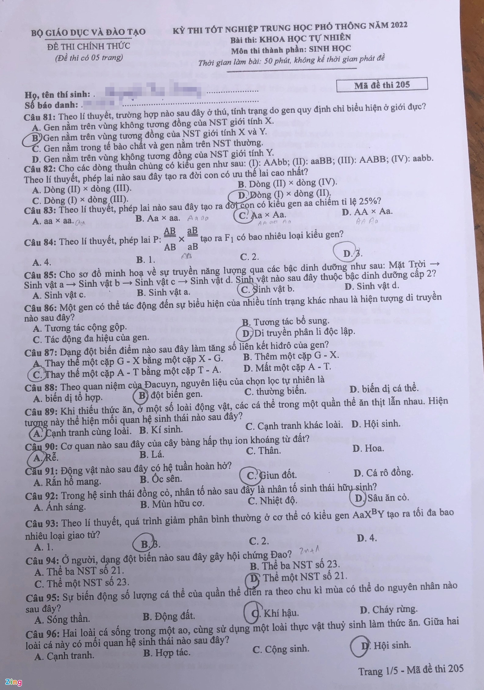 Đề và gợi ý đáp án môn Sinh tốt nghiệp THPT 2022