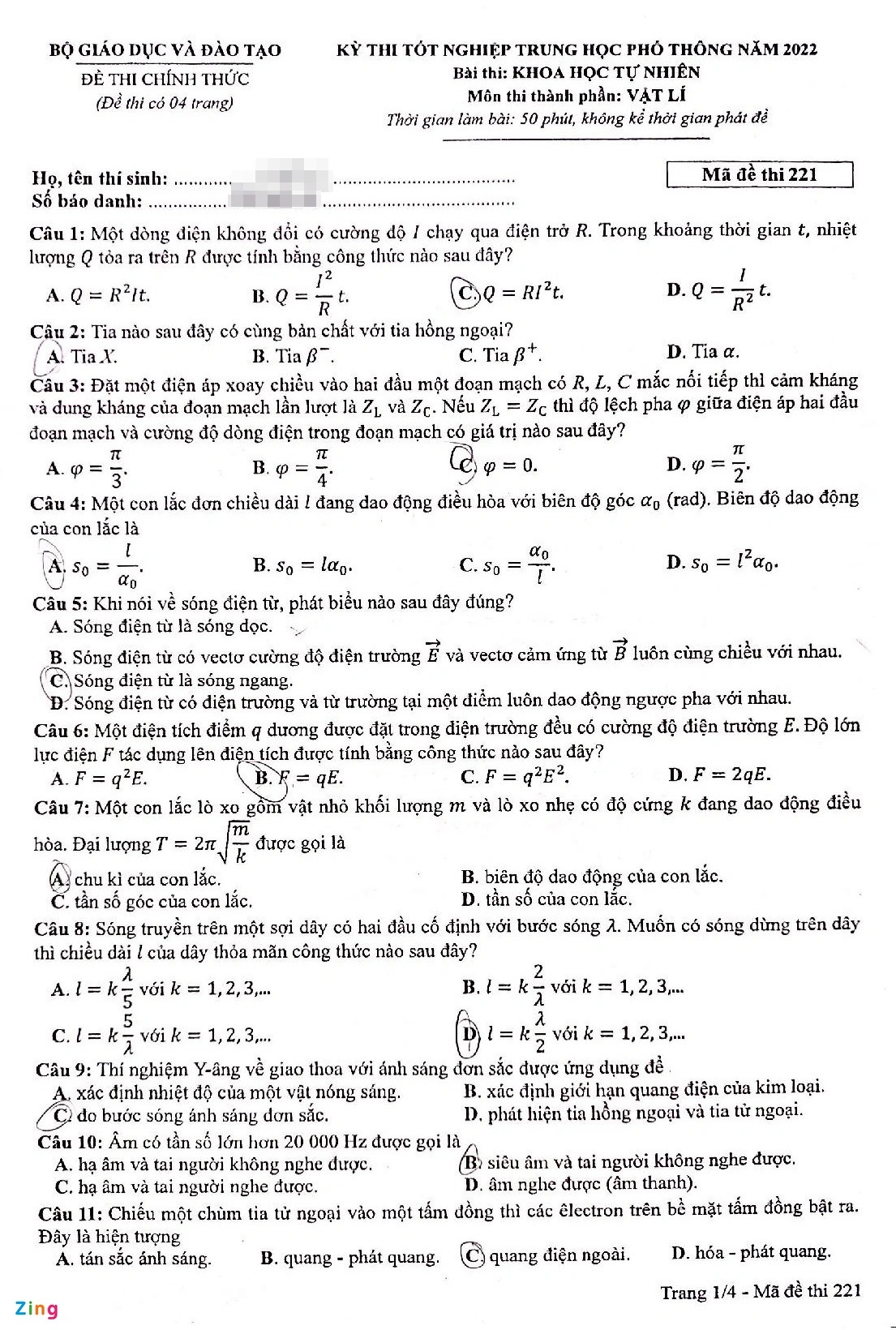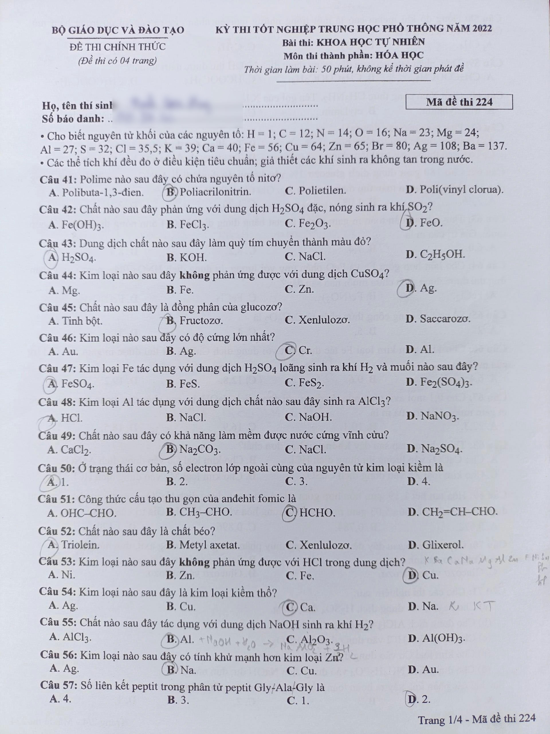 08/07/2022 17:34Đề và gợi ý đáp án môn thi tổ hợp Khoa học tự nhiên: Vật lý - Hóa học - Sinh học tốt nghiệp THPT 2022