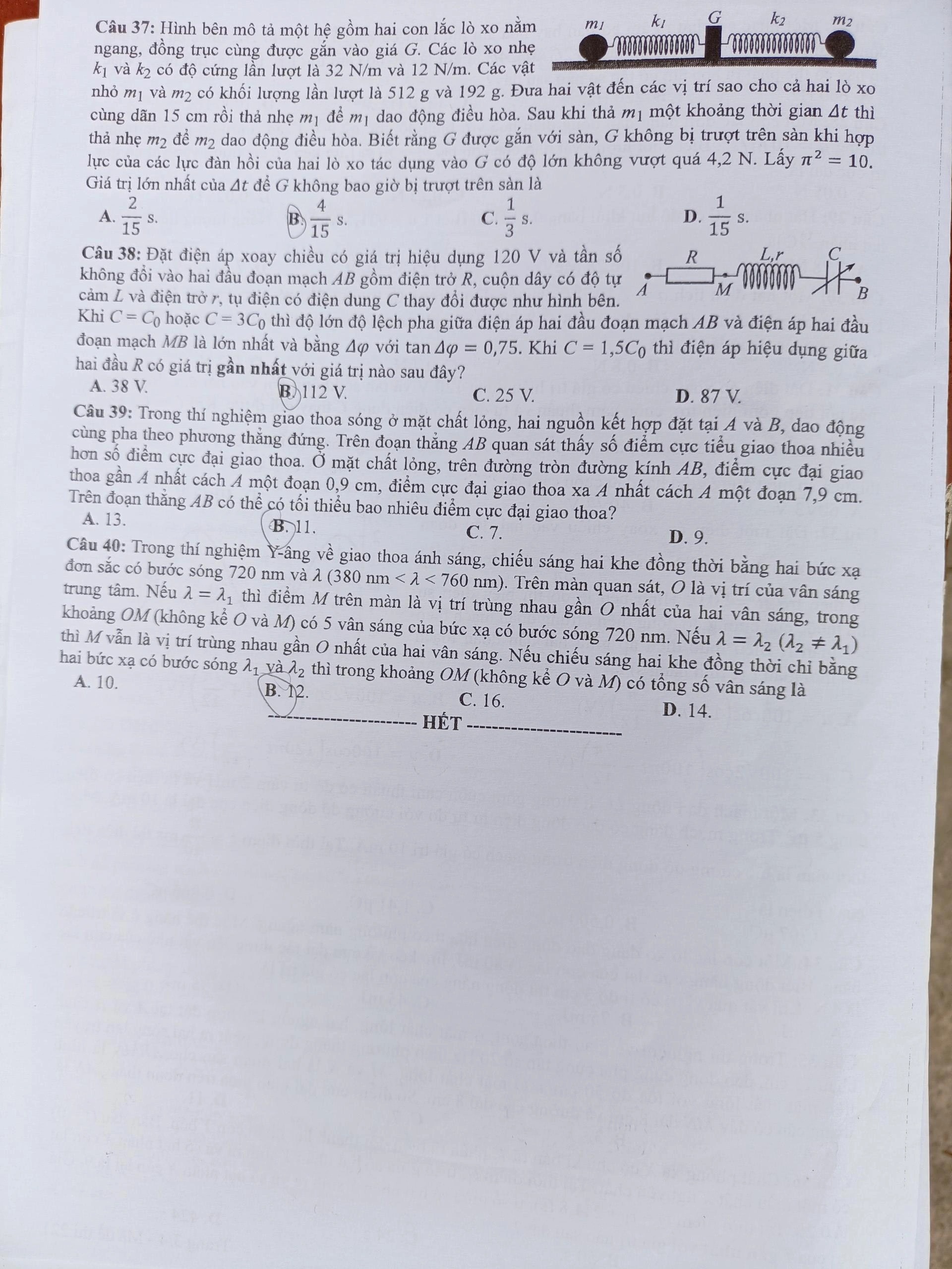 Để làm bài thi tổ hợp Khoa học tự nhiên đạt hiệu quả cao nhất, các thí sinh cần chú ý: Lưu ý mã đề thi trước khi làm bài, làm trên cùng một phiếu trả lời trắc nghiệm, thí sinh làm các bài thi KHTN trên cùng một phiếu trả lời trắc nghiệm, chỉ được tô bằng bút chì đen, điền chính xác và đủ thông tin vào các mục trống ở phía trên phiếu trả lời trắc nghiệm, không cùng mã đề thi, phải báo ngay với cán bộ coi thi.