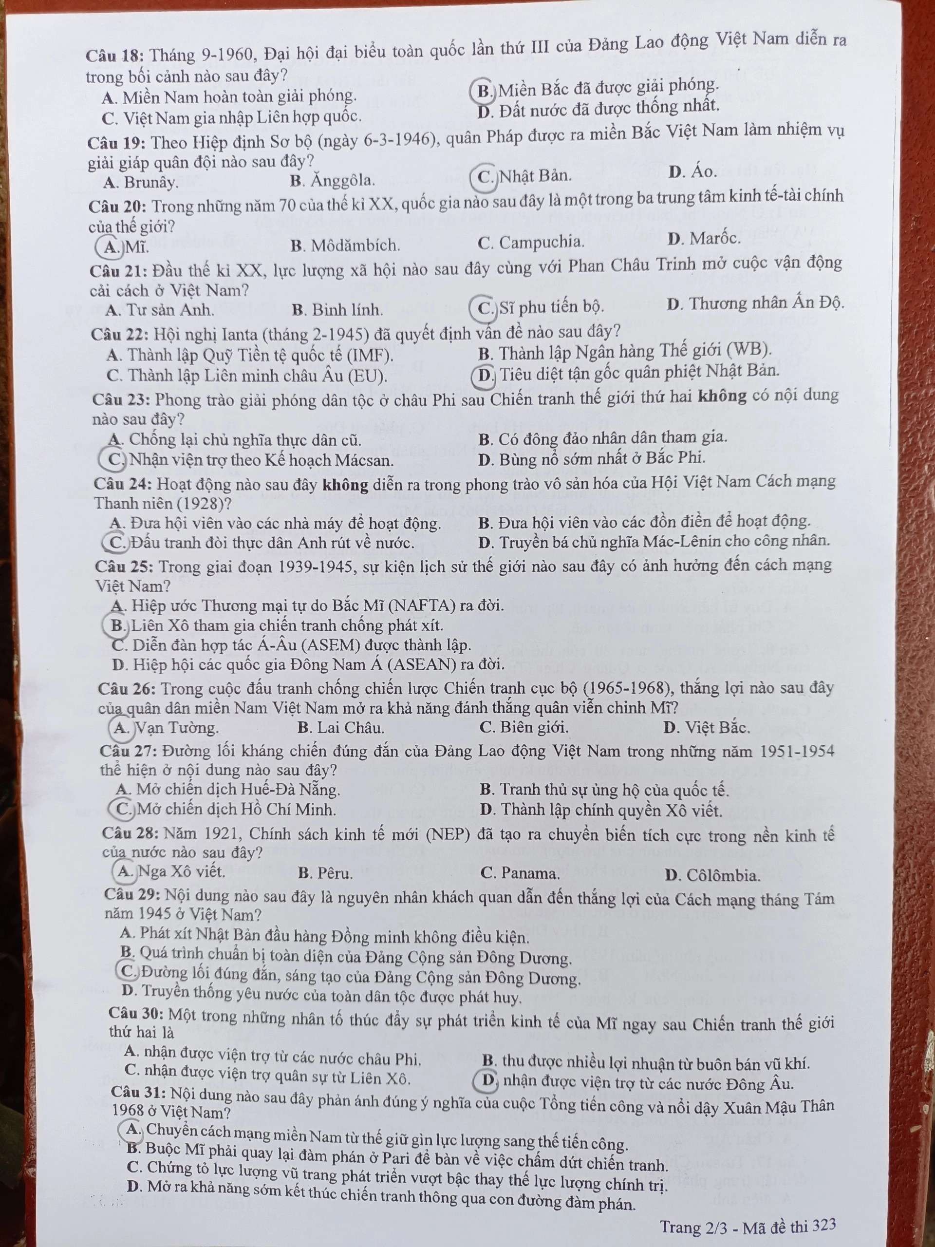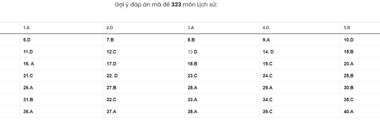 Đề thi môn Lịch sử tốt nghiệp THPT 2022