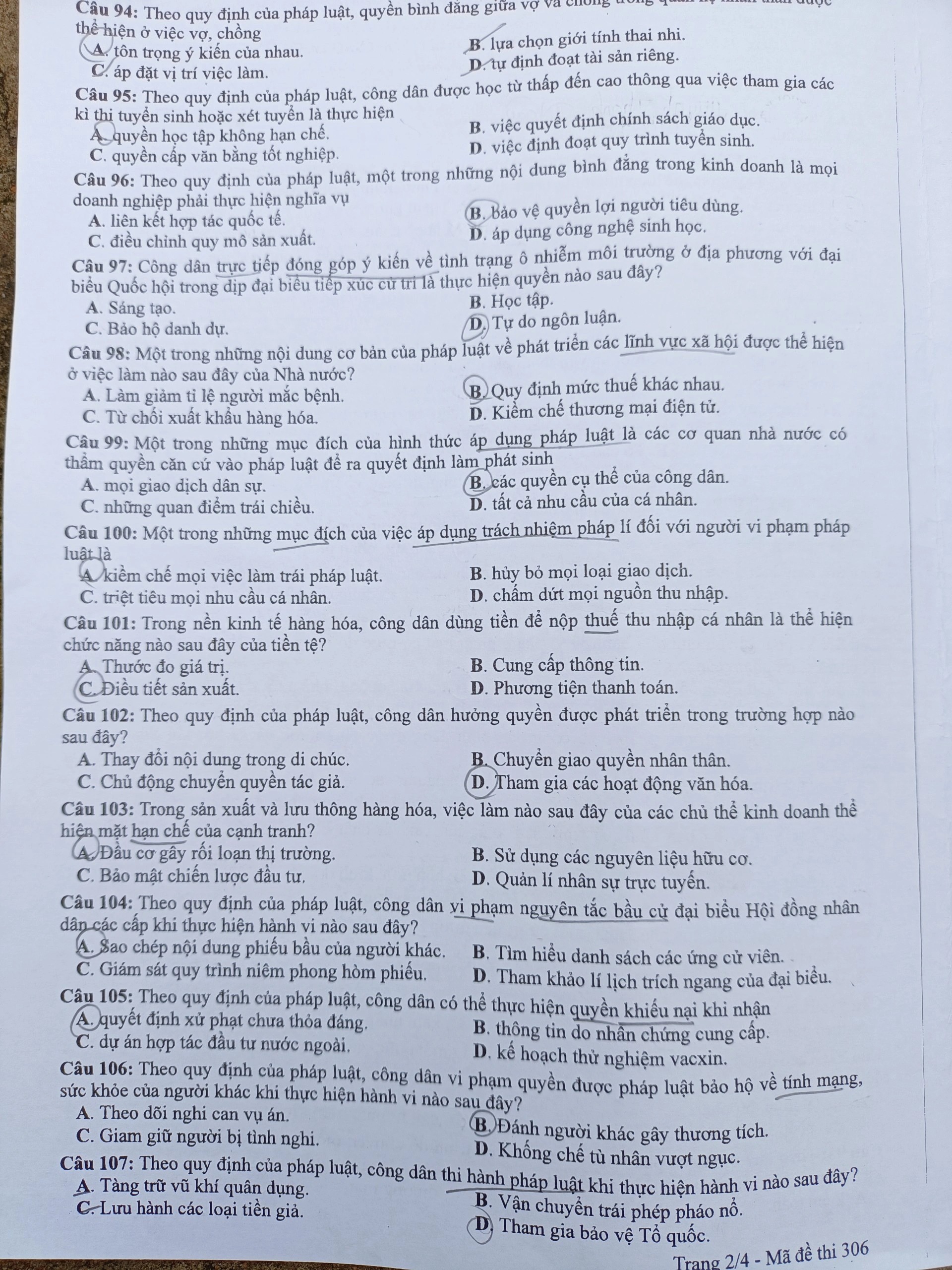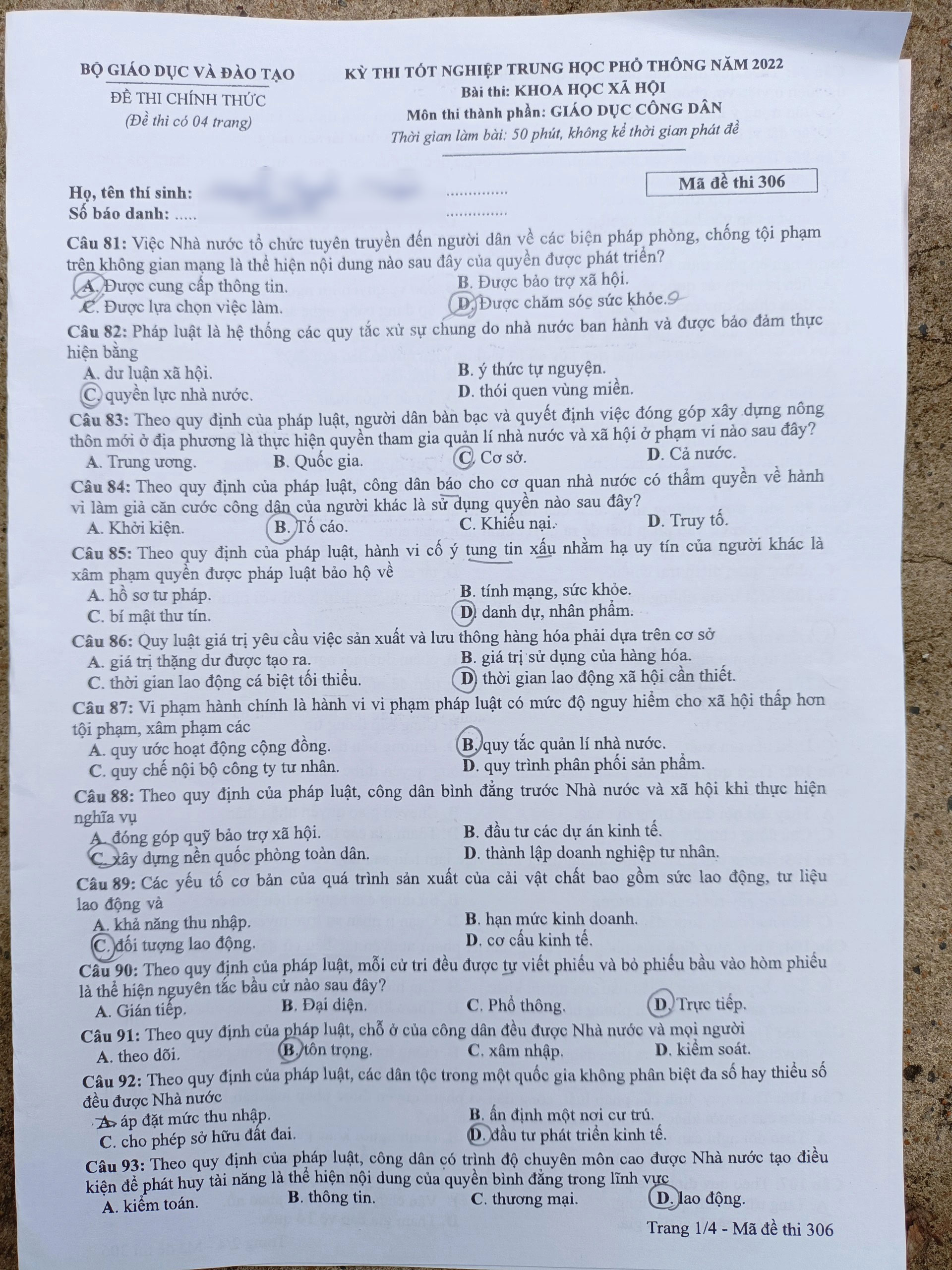 Đề thi và gợi ý đáp án môn Giáo dục Công dân tốt nghiệp THPT 2022