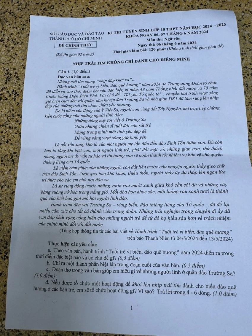 06/06/2024 21:24Đề văn thi vào lớp 10 TP.HCM: Thí sinh hào hứng, giáo viên khen hay
