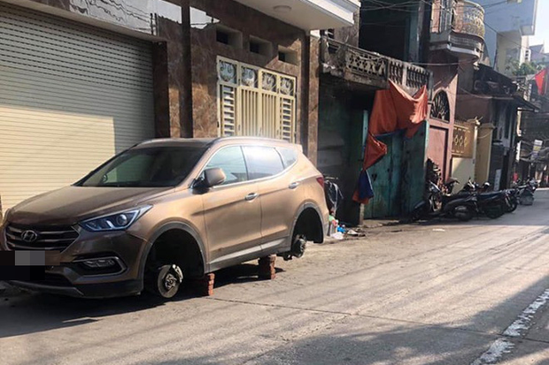 Theo thông tin được chia sẻ trên MXH, chiếc ô tô vẫn thường xuyên được gia chủ đỗ ngay trước cửa nhà. Tuy nhiên đến sáng 12/10, khi mở cửa chuẩn bị lấy xe để đi làm, gia chủ mới tá hỏa khi chiếc xe còn nguyên mà 4 chiếc bánh thì đã không cánh mà bay. Dưới gầm xe xuất hiện những chồng gạch, nghi do kẻ gian dùng để kê trong quá trình tháo trộm bánh.