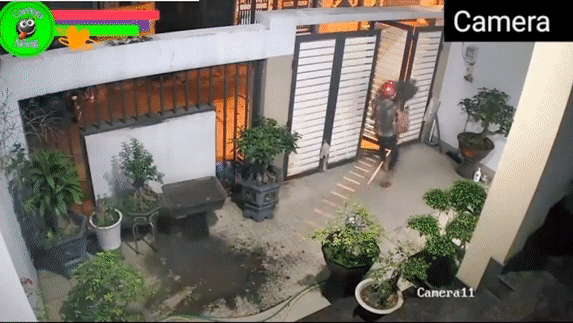 Đoạn video được camera an ninh ghi lại vào lúc nửa đêm. Lúc này có hai tên trộm đeo khẩu trang kín mít, đầu đội mũ bảo hiểm trèo tường vào bên trong sân nhà để ăn cắp dàn cây cảnh. Một tên leo hẳn vào trong sân. Mất chút thời gian sờ soạn, chọn lựa, gã trộm quyết định chọn cây nặng và to nhất ngay sát tường.