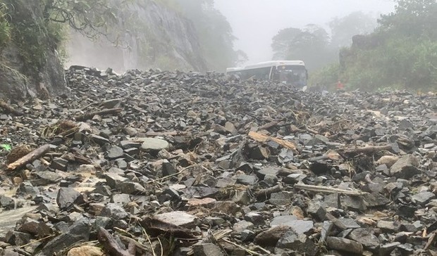 Hiện nhà thầu đang điều động thêm 2 máy đào, 1 máy xúc lật tiếp cận hiện trường để hót sụt, dự kiến thông xe lúc 17h cùng ngày.