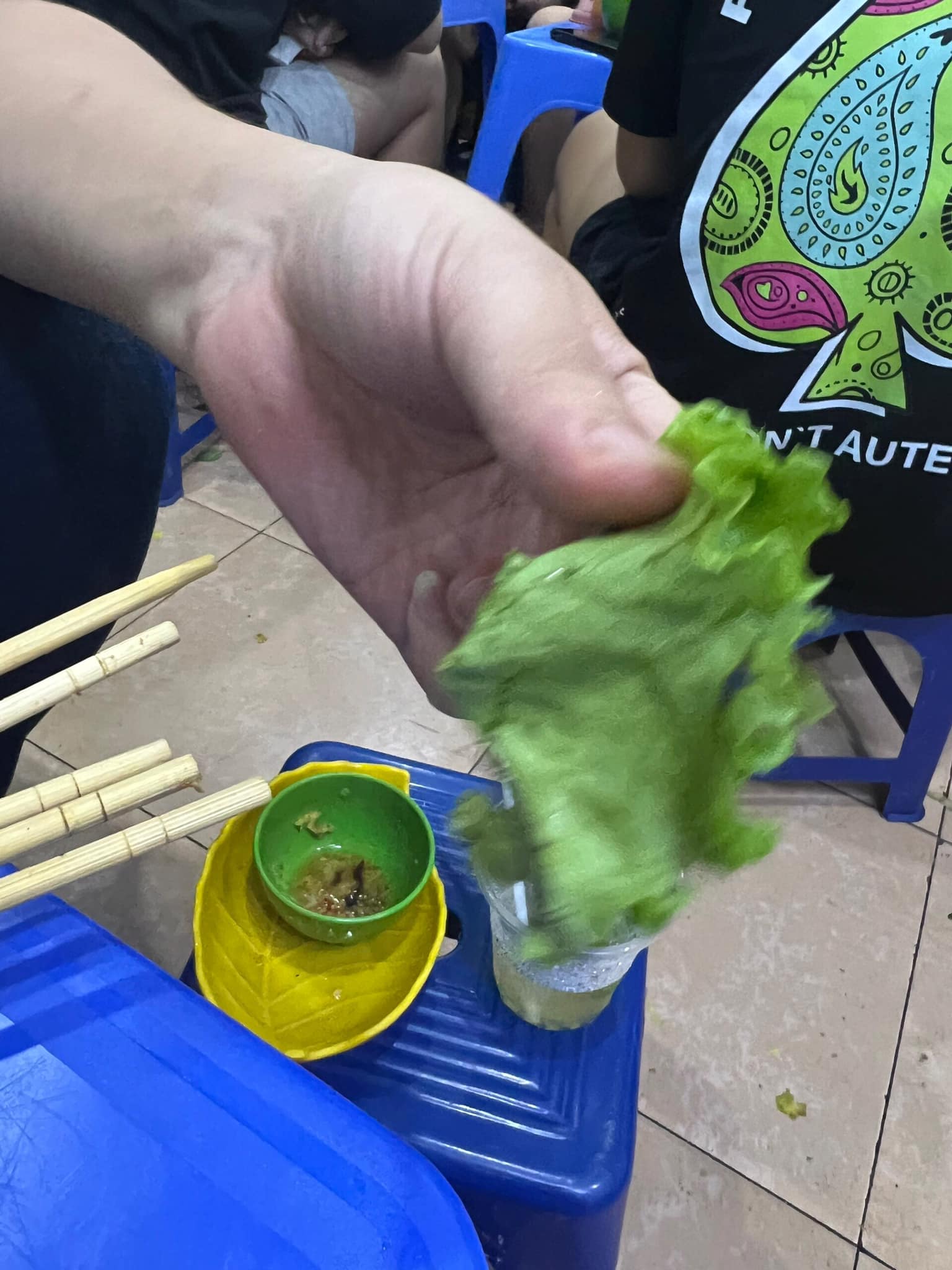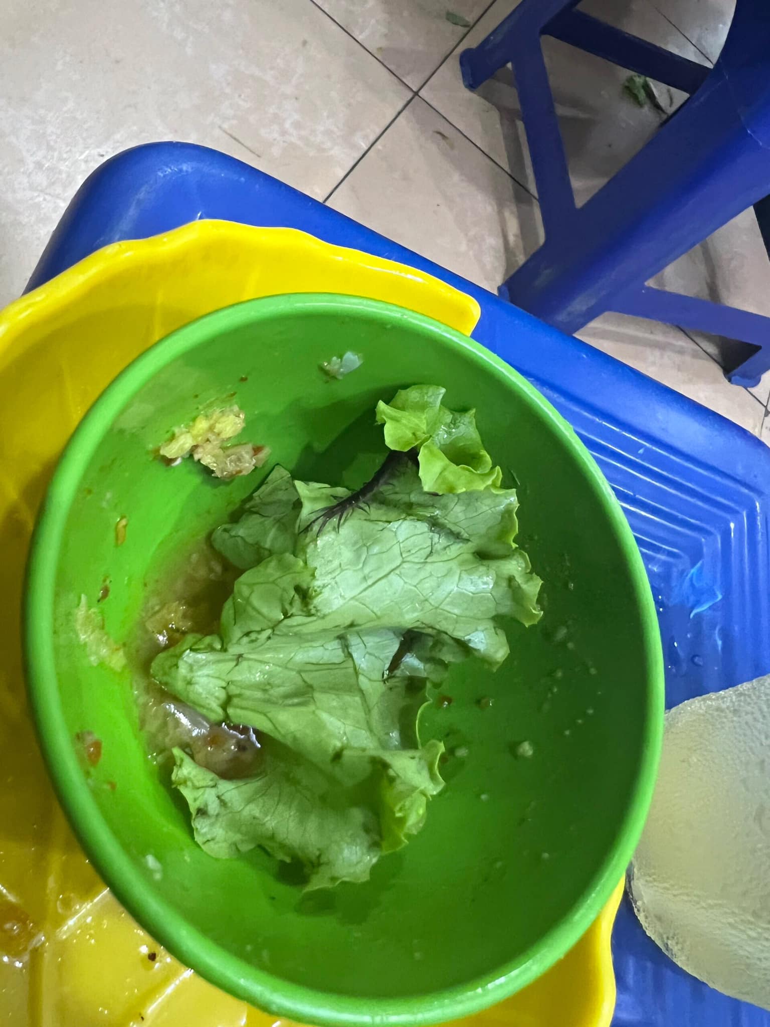 | Con rết to xuất hiện trong đĩa rau ở quán bánh xèo trên phố Đội Cấn. |