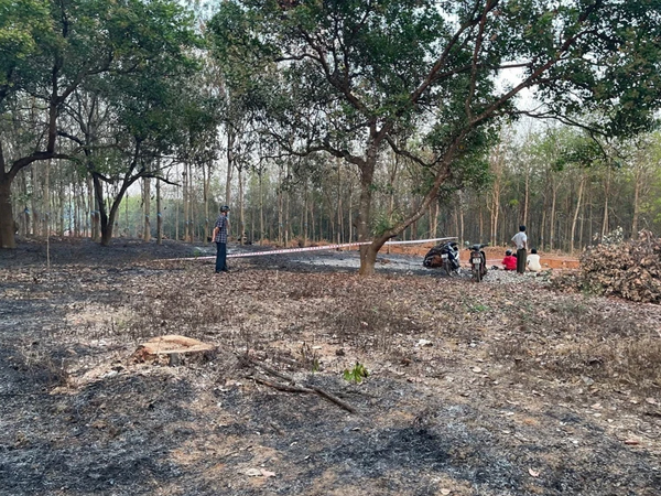 Thời điểm phát hiện anh Việt tử vong, vườn điều của nhà anh Việt đã bị cháy lan mạnh khoảng 500m2, và lan sang vườn cao su của người dân khác.