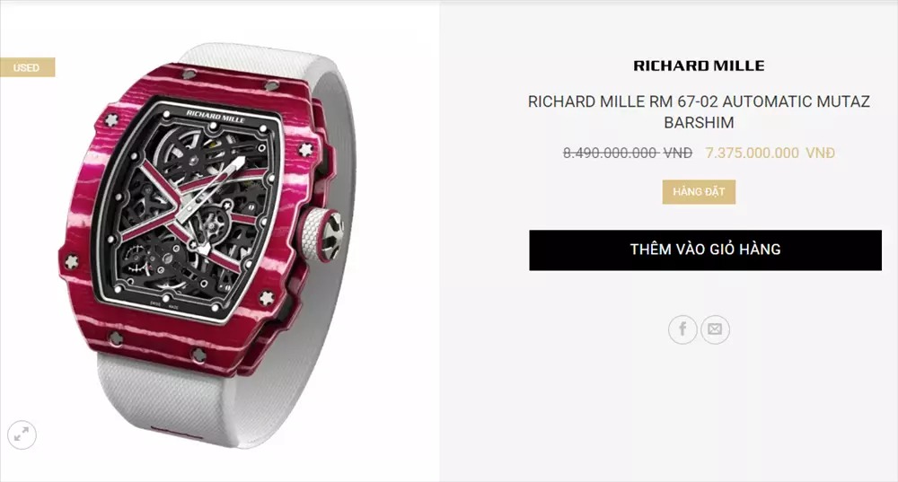 Theo tìm hiểu, đây là chiếc đồng hồ Richard Mille RM 67-02 Mutaz Essa Bashim, được thiết kế đặc biệt dành cho các vận động viên và cả những người trẻ tuổi năng động, nhiều tiền. Tham khảo ngẫu nhiên trên một trang web bán chiếc đồng hồ này cho thấy giá của nó lên tới hơn 7 tỷ đồng.
