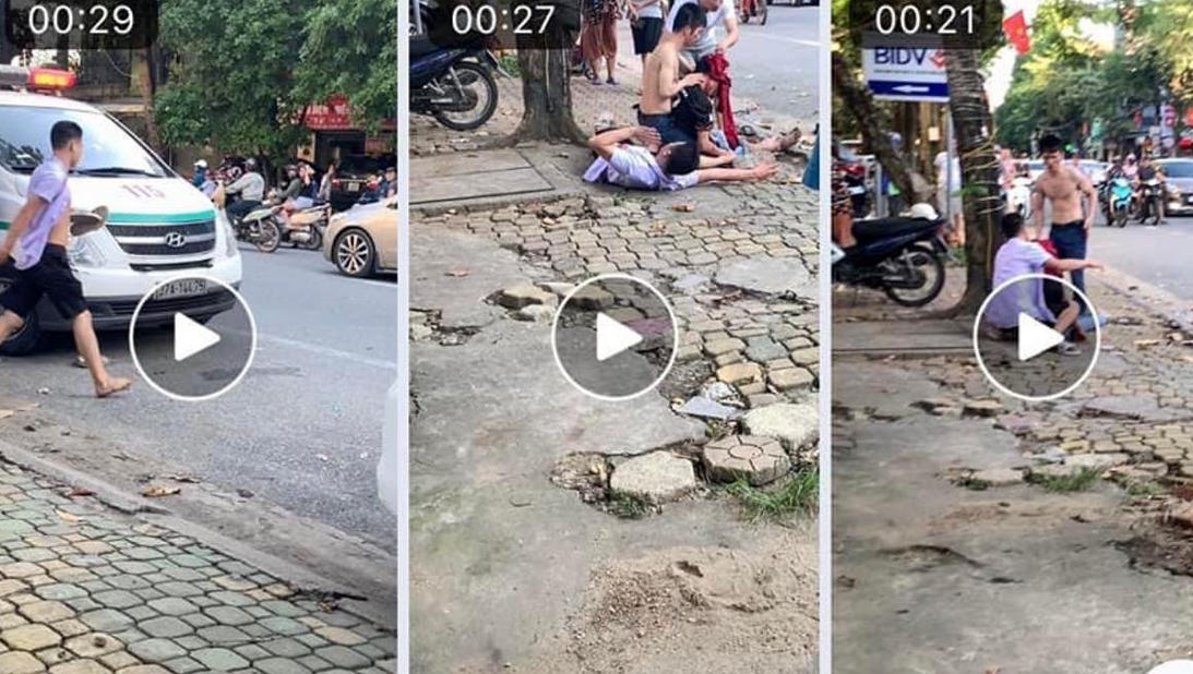 Một người đàn ông khác đứng cạnh đó cũng bị viên gạch văng trúng gây choáng váng và gục xuống vỉa hè.