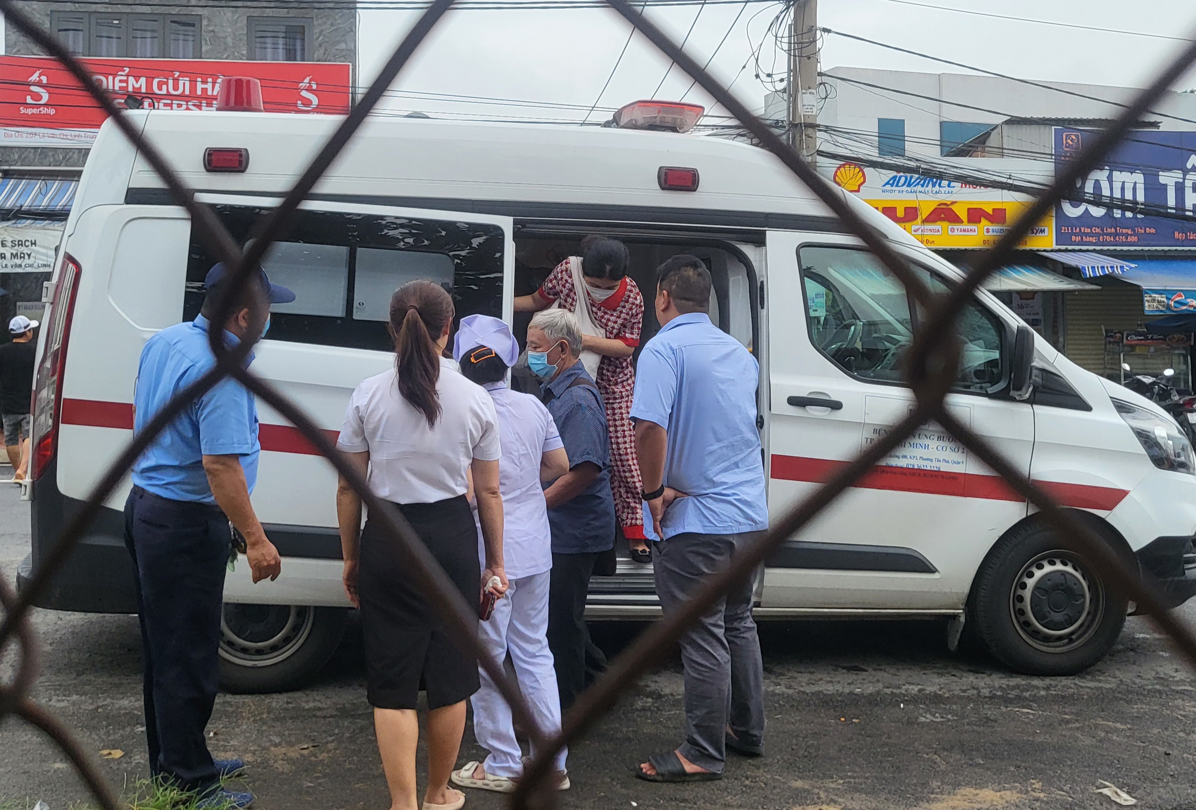 Hơn 15h ngày 2/10, xe cấp cứu của Bệnh viện Ung bướu TP.HCM đưa 3 bệnh nhân cùng người nhà sang Bệnh viện Đa khoa Khu vực Thủ Đức. Ông N.V.M (72 tuổi, quận Bình Tân) là bệnh nhân lớn tuổi nhất.